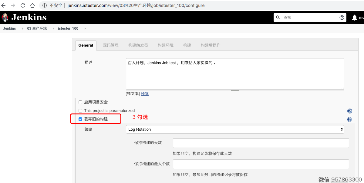 3、勾选「丢弃旧的构建」