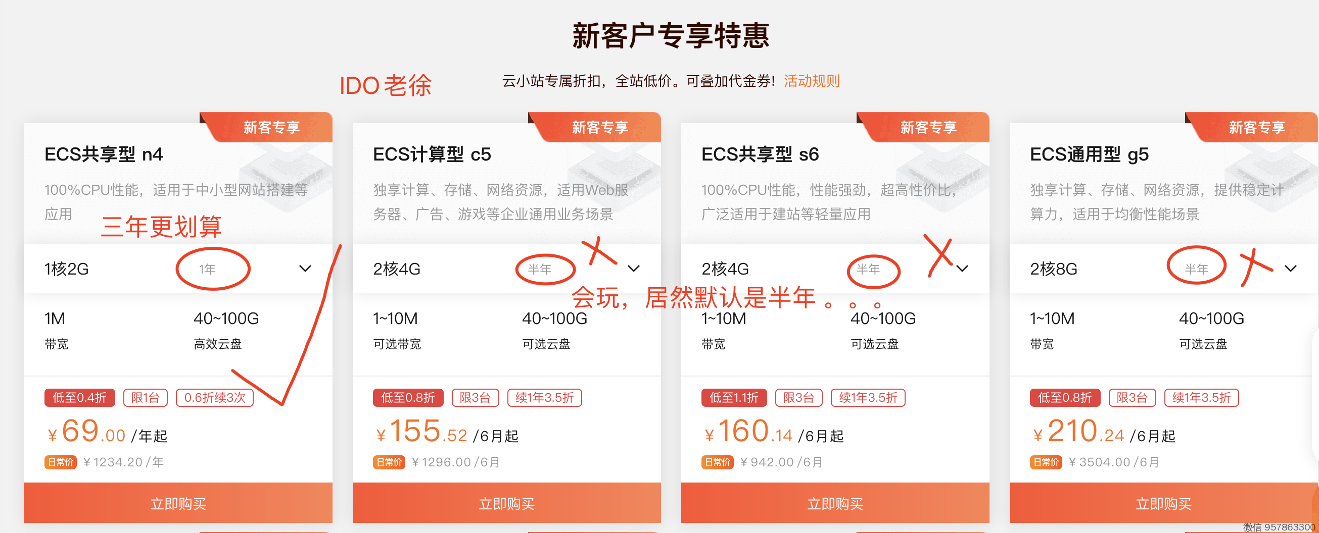 见截图 ,选 ECS n4 型号,更划算 。