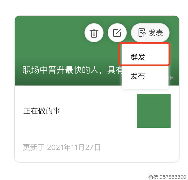 一定要选「群发」 (点「发布」是不会推送给你的关注用户的 ,切记,别搞错)