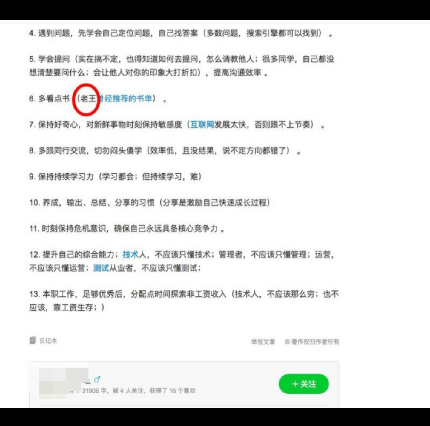 老徐,简单通过这个作者,人肉了一把,发现是某培训机构的 。官网介绍是这样写的 “聚集国内知名互联网技术骨干,精心研发一套xxx体系,做技术人的指路明灯 ... ”